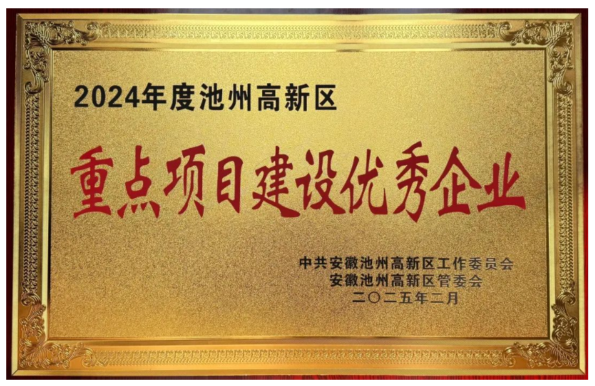 Recently, Sinoma(Chizhou) Energy Conservation New Material Co.,Ltd. was awarded the title of “Excellent Enterprise in Key Project Construction in 2024” by Chizhou City for its outstanding contribution in key project construction. Sinoma(Chizhou) Energy Conservation New Material Co.,Ltd. successfully stood out by virtue of the excellent construction achievement of the “20 million square meters annual output of calcium silicate board production line project”, which is a national strategic emerging industry, and fully demonstrated its leading position in the regional economic development. The project has set industry benchmarks in automated production, digital management and safety construction, and has formed replicable and popularizable experience.