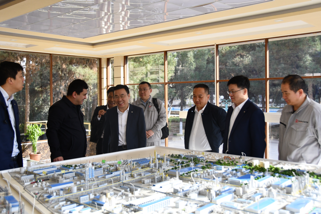 Meng Qinglin held working talks with Farukh, Chairman of Navoi Nitrogen Fertilizer Company. Both sides engaged in practical exchanges on project progress, technical collaboration, and future cooperation directions. Accompanied by Farukh throughout the visit, Meng Qinglin inspected the site of the Navoi Green Energy Low-Carbon Project, invested and constructed by the company. He listened to project reports, supervised engineering progress on-site, reviewed safety production measures, and provided clear requirements for construction quality and safety management.